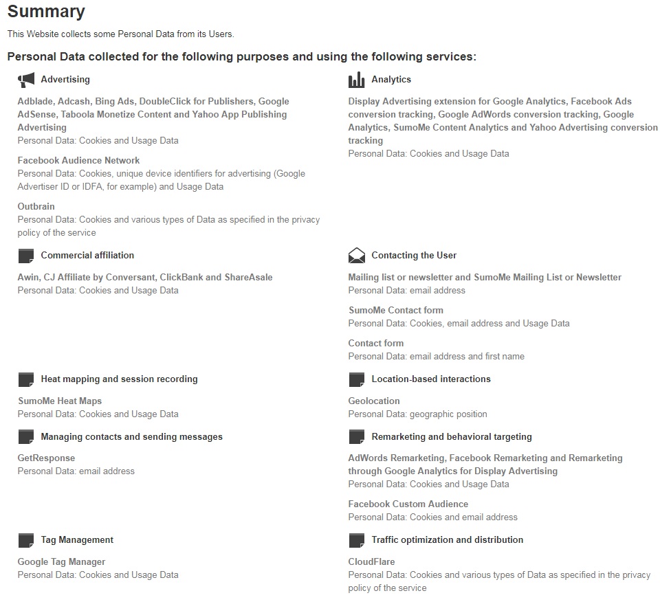 Adblade (Adblade.com/Congoo LLC) Adblade is an advertising service provided by Adblade.com/Congoo LLC. Personal Data collected: Cookies and Usage Data. Place of processing: United States –